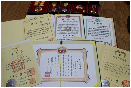 | 정원도 할아버께서 받은 훈장과 표창장들. |