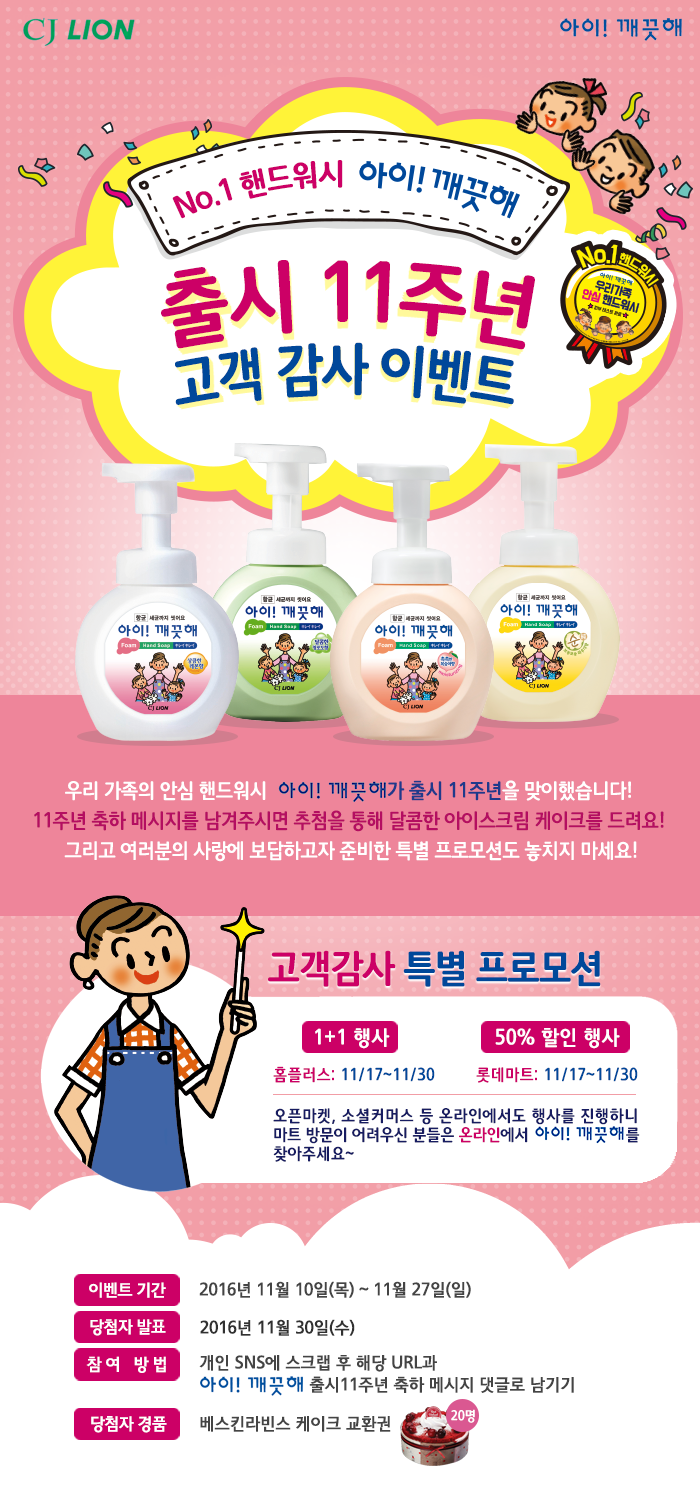 아이! 깨끗해 출시 11주년 기념 고객 감사 이벤트