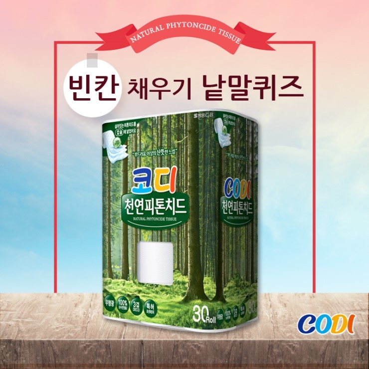 코디 천연 피톤치드 화장지 출시를 맞아 퀴즈 이벤트를 준비했어요.
